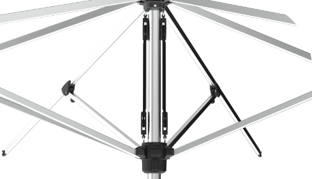 Perfect for homes, restaurants, and commercial applications, the SU2 and SU10 models come with bases, allowing them to be positioned next to or inside tables. The SU2 is a modern take on the classic wooden market umbrella, while the SU10 Commercial Centre Pole Umbrella is robust and practical, designed to withstand winds up to 95 km/h. For context, a 35 km/h wind can topple a full wine glass and tear a newspaper, whereas 90 km/h can topple shallow-rooted trees.
